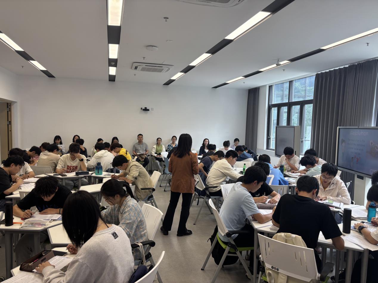 课堂上,陈雪婷老师运用阅读圈(Reading Circles)教学模式,围绕课文的叙事结构展开教学。她将学生分组,引导大家从不同角度深入剖析文本,探讨叙事逻辑与情节发展。同时结合产出导向法(POA),以任务驱动学生阅读与思考,鼓励学生用英语分析和总结叙事特点,课堂氛围活跃,学生参与度高。