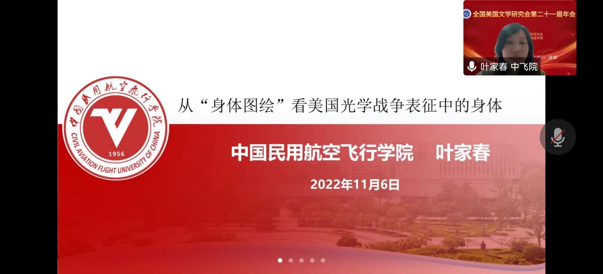 根据会议主办方安排,叶家春博士担任第十二分论坛“美国文学中的记忆与身体(一)”主持人,并作了题为“从‘身体图绘’看美国光学战争表征中的身体”的发言。叶家春博士从人文地理学家德雷克·格雷戈里的“身体图绘”入手,探索了光学战争表征中的身体。黄思杰老师在第十七分论坛“美国文学作家作品新解(三)”中作了题为“虚实之间:科尔森·怀特海德《地下铁路》中的双重创伤记忆”的发言。黄思杰老师以《地下铁路》为文本,探索了其虚实叙事手法和创伤记忆表达。