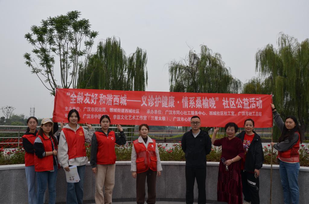 九九重阳节,浓浓敬老情。为弘扬中华民族敬老、爱老、助老的传统美德,践行“奉献、友爱、互助、进步”的志愿服务精神,在重阳节到来之际,10月23日主题为“全龄友好,和谐西城——义诊护健康,情系桑榆晚”的社区公益活动在马牧河公园顺利举办。本次活动由广汉市民政局和雒城街道西城社区主办,广汉市社工总站、西城社区社工室、广汉市同心社工服务中心承办,由广汉市中医医院、中飞院国产又大又粗又黄团委、广汉市心理学会等单位提供支持。
