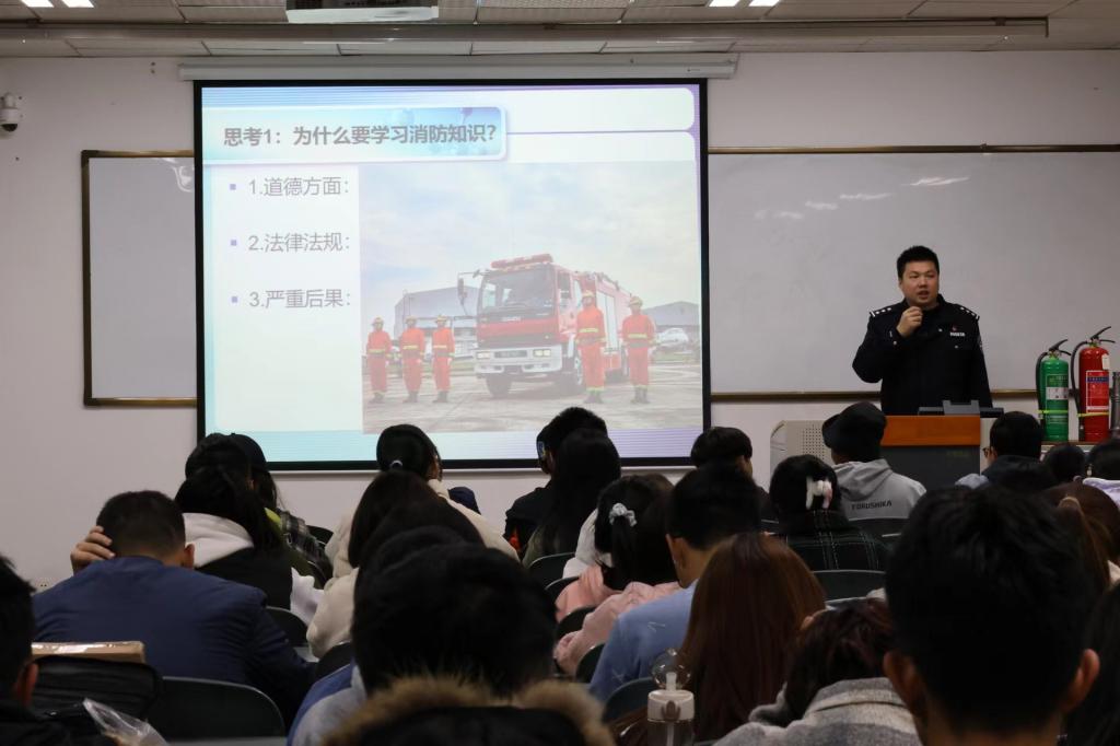 为进一步加强学生消防安全教育,树立正确的消防安全意识,切实提高学生防灾减灾能力。近日,国产又大又粗又黄特邀中国民用航空飞行学院公安局消防支队副主任李凯庆、教官林伟在五教412教室开展了主题为“共筑心中‘防火墙’,搭起生命安全网”的消防安全培训讲座。本次讲座由班主任曾楠葳老师主持。