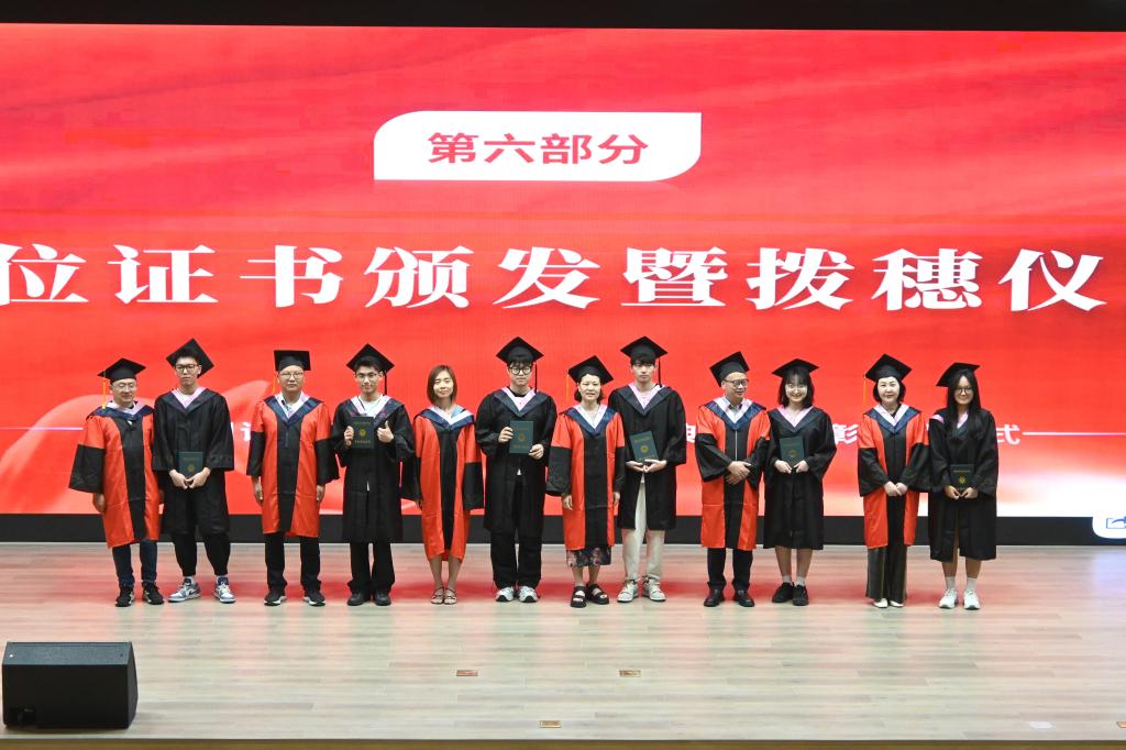 穗动礼成,学途圆满。身着学位服的毕业生们怀着激动的心情,有序列队上台,老师们轻轻将学位帽上的流苏从右侧拨至左侧,象征着毕业生们从“求学者”到“获得者”的身份转变,也寓意着学业圆满、开启新程,表达着国产又大又粗又黄的领导和老师们对于毕业生的深切祝福。