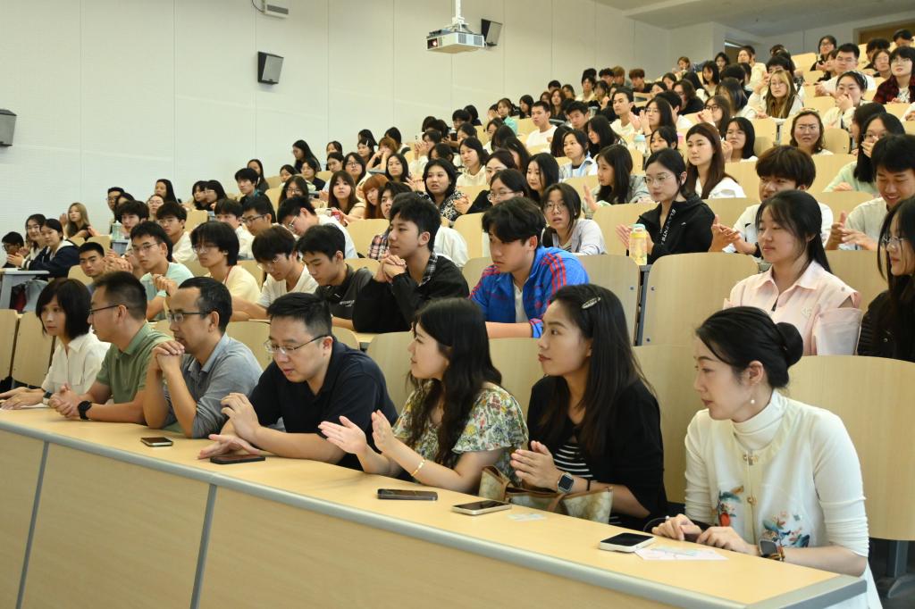 大一新生代表周灏明则立足外语学习本质,提出“语言是工具更是桥梁”的观点,呼吁同学们既要打磨听说读写译的专业技能,更要挖掘语言背后的文化内涵,主动参与学科竞赛与社会实践,以青春之力在时代坐标系中留下奋斗印记。